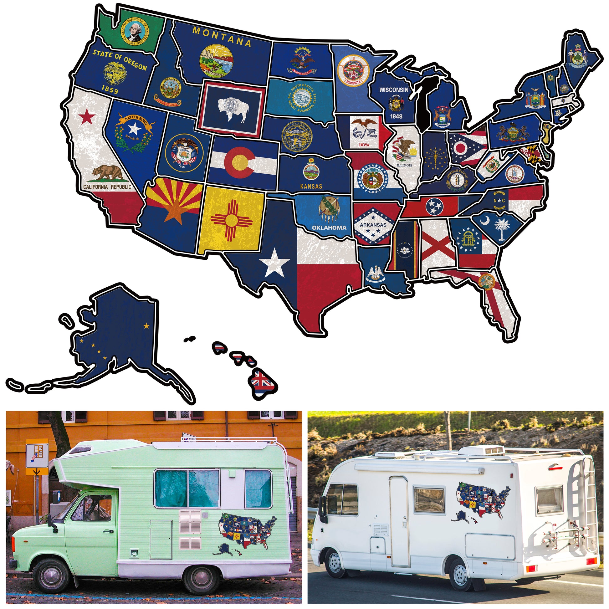 The Creative Way To Keep Track of Your Travel - Commemorate & relive your journey with a captivating display of the USA. Whether you are using motorhome, camper or RV with these premium vinyl decal set with a strong adhesive back for indoor and outdoor.
