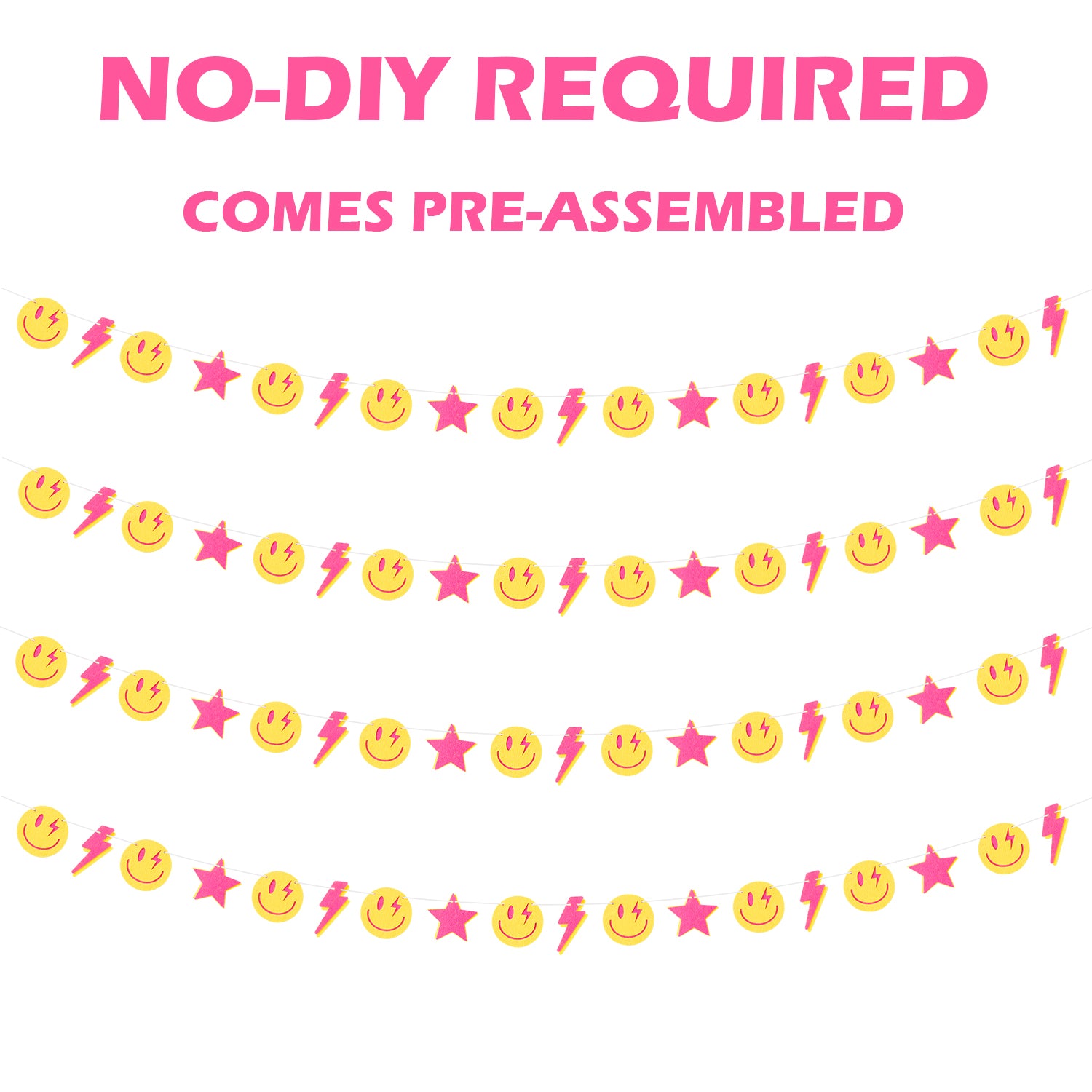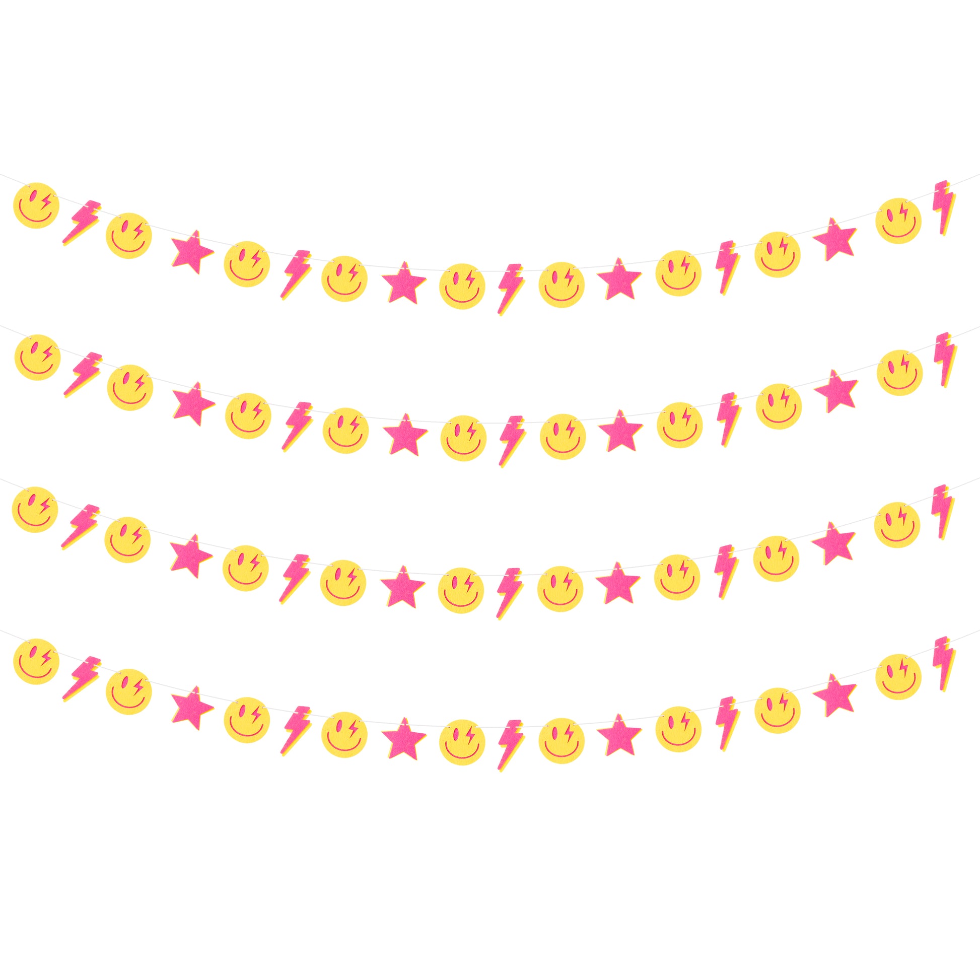 <br>4Pcs Preppy Smile Face Lighting Star Garland, Each preppy garland is about 78 inches<br>