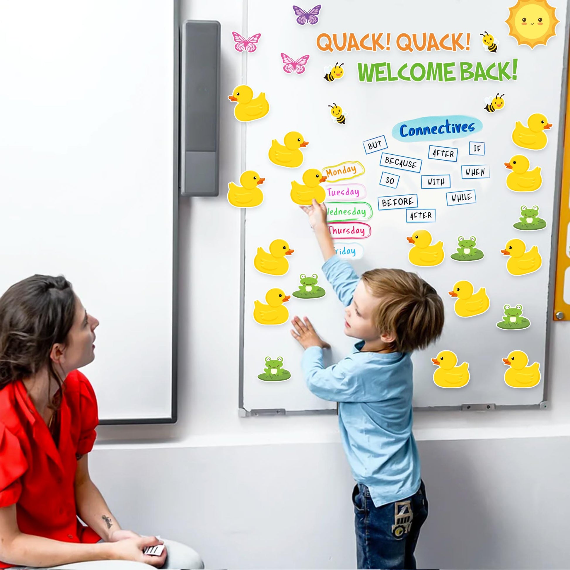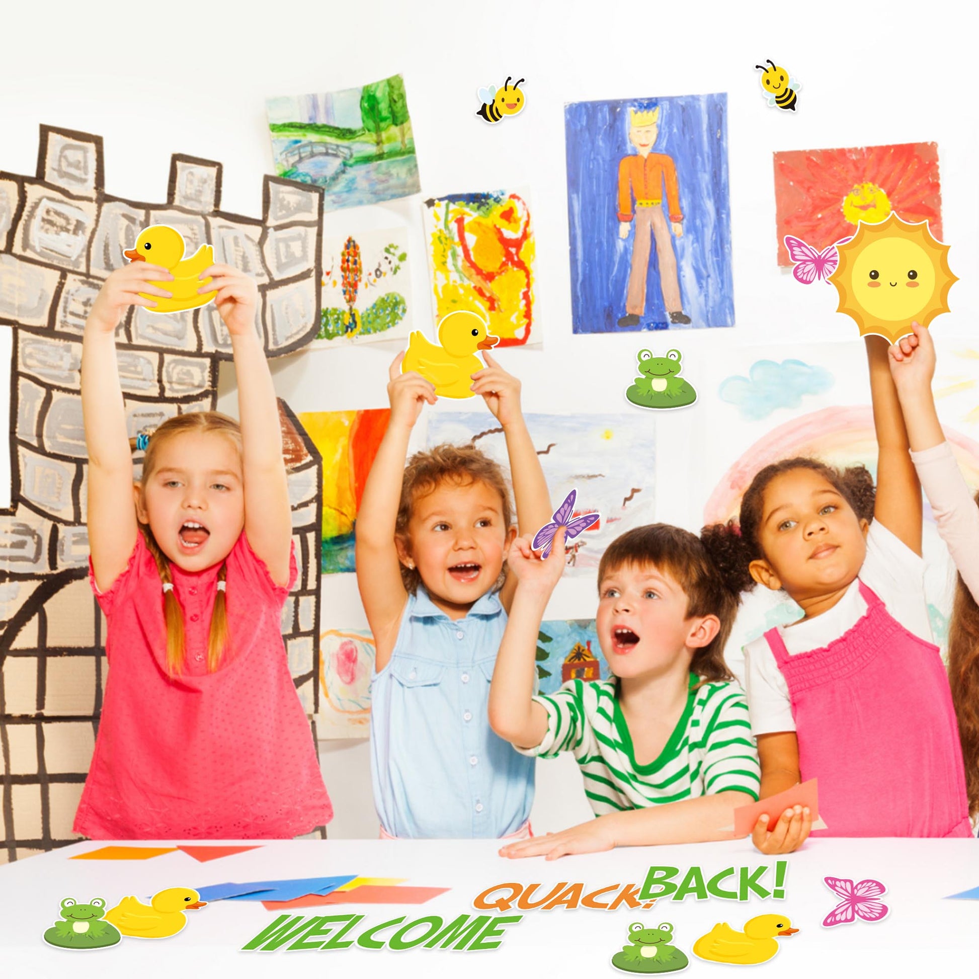Ducks Cutouts Set - The package contains 36 Pieces Ducks Cut-Outs,4 Pieces English,5 Pieces Frog,4 Pieces Butterfly,4 Pieces Bee,1 Piece Sun,5 sheets of Dispensing Paper.These Ducks Classroom Bulletin Board Decorative Cutouts are a great way to decorate your classroom.