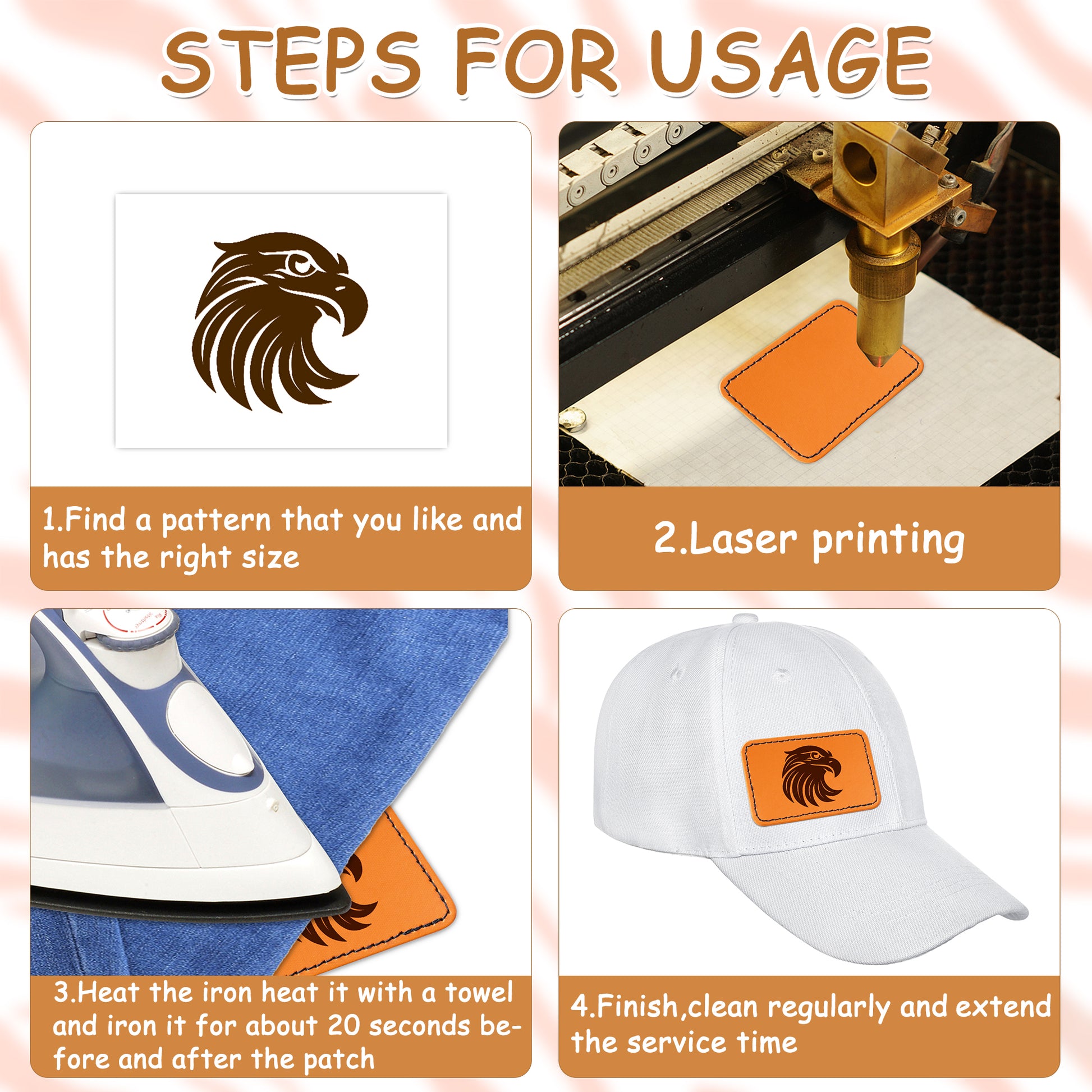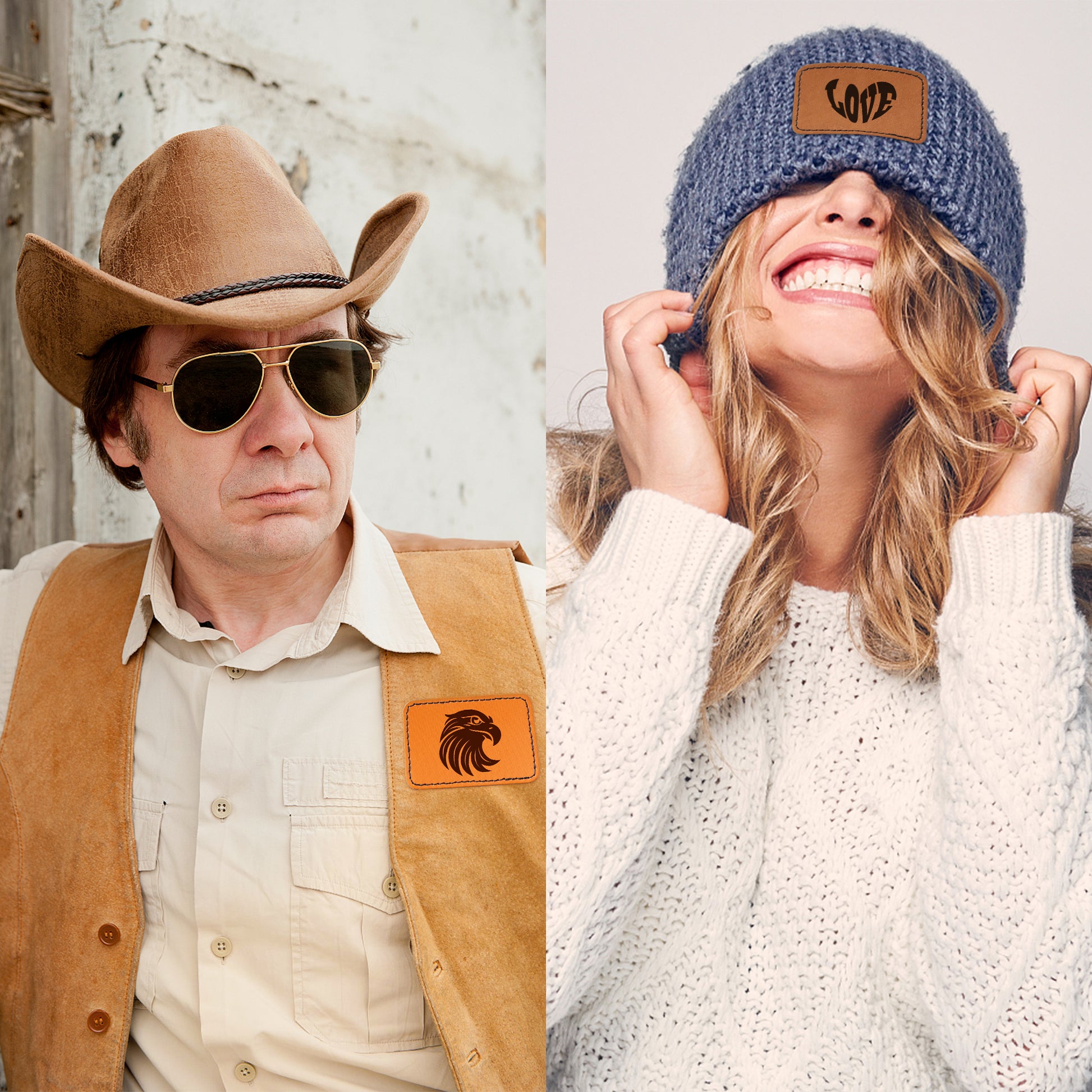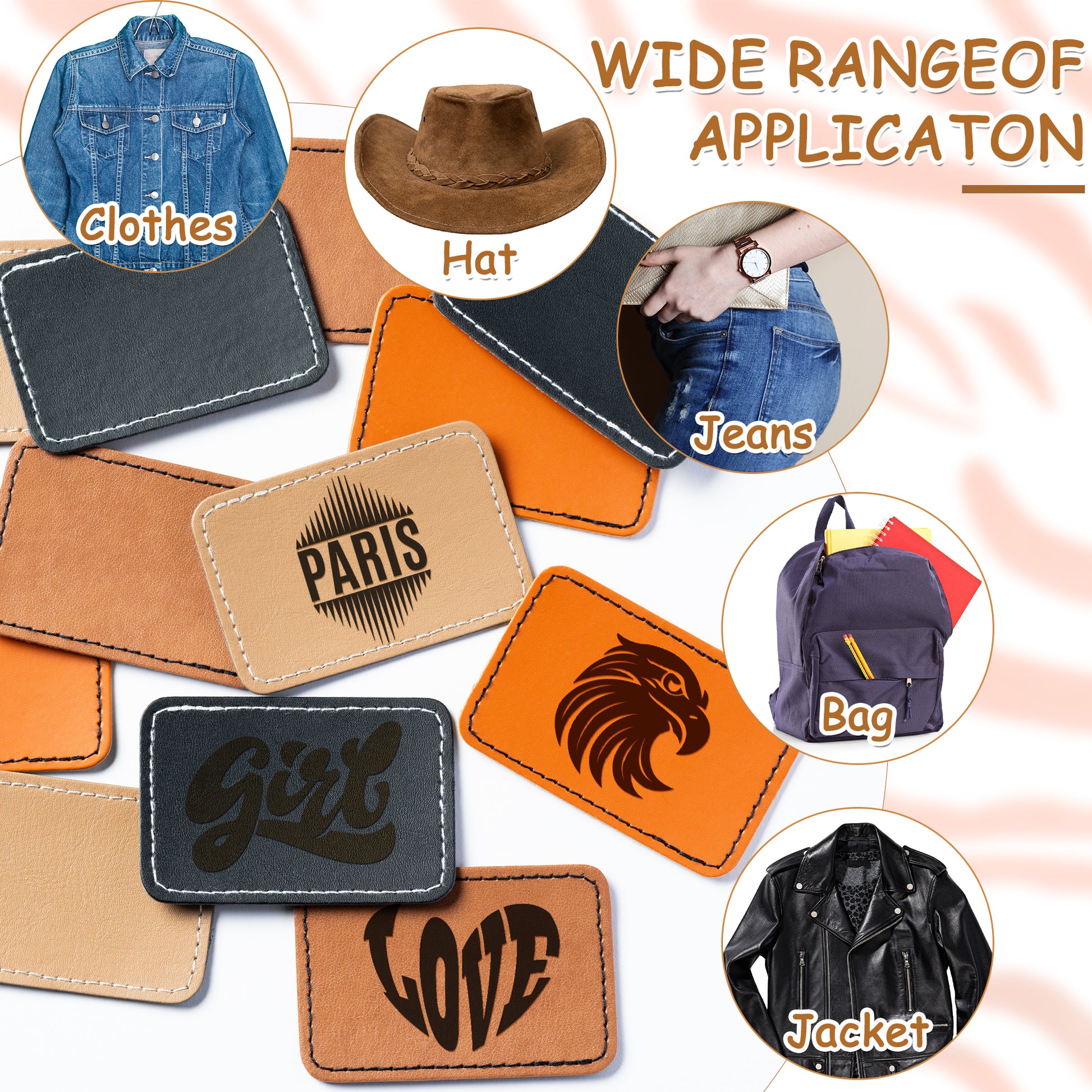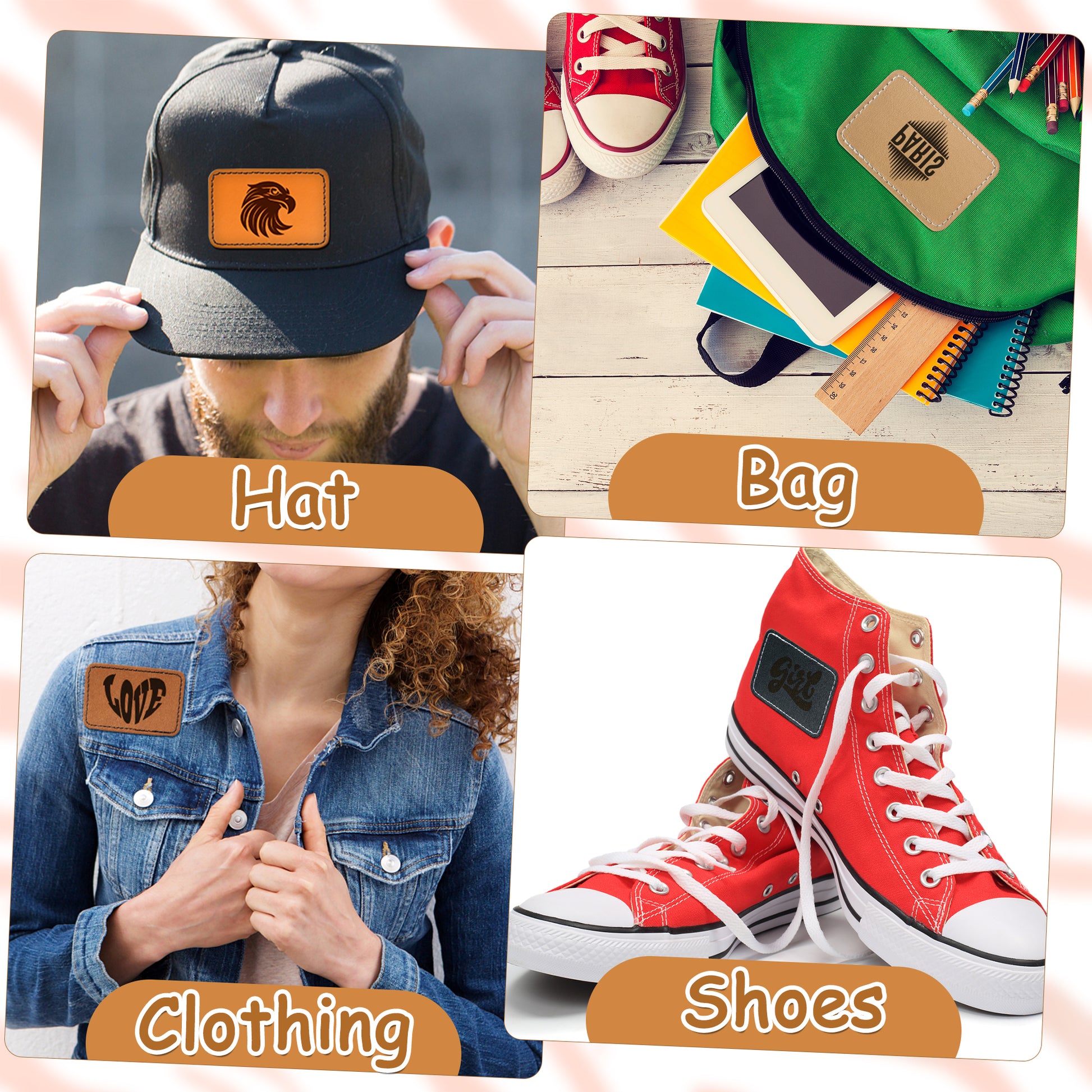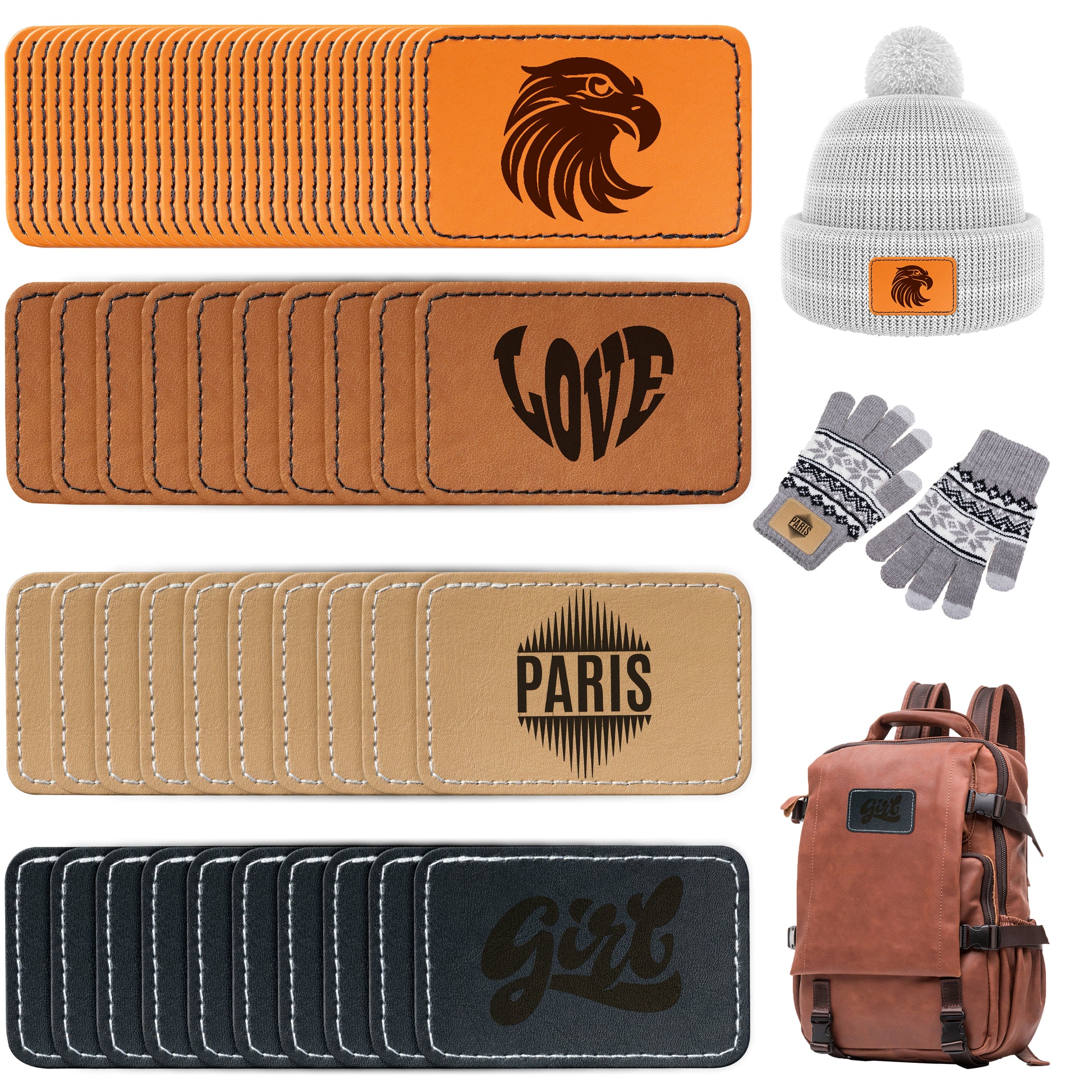 60Pcs Blank Leatherette Hat Patches with Adhesive, 4 Style Colors for Gray, Khaki, Brown, Cow Skin Rustic Leatherette Rectangle Patches for DIY Hats or Clothes Fabric Repair Sew Laser Supplies