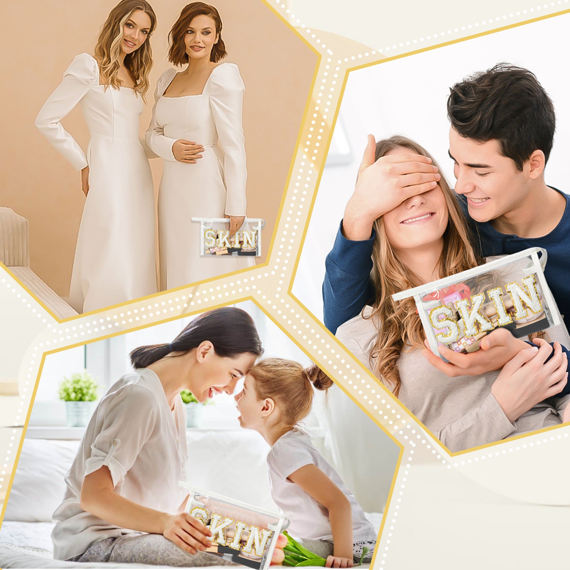 Unique Design: The Preppy Patch Cosmetic Toiletry bag with the interesting “SKIN”letter patterns and the white color frame color make make your life more vibrant and highlight your personal character.